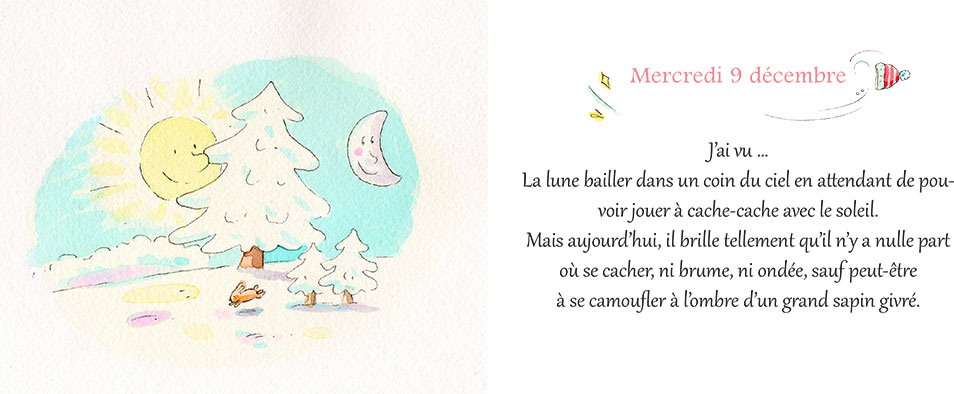 Julie Rey, autrice et Armelle Modéré, illustratrice, vous offrent chaque jour un haïku, pour un mois de décembre doux et poétique.