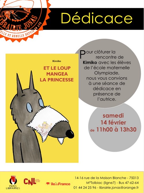 Retrouvez Kimiko (Et le loup mangea la princesse) en dédicace à la Librairie Jonas le samedi 14 février de 11h à 13h !